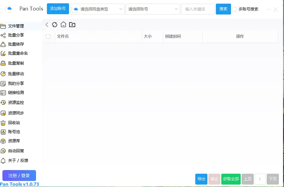 - 批量网盘管理:支持百度网盘、阿里云盘、夸克网盘、迅雷网盘、123云盘、天翼云盘、蓝奏云、115网盘和UC网盘的管理。